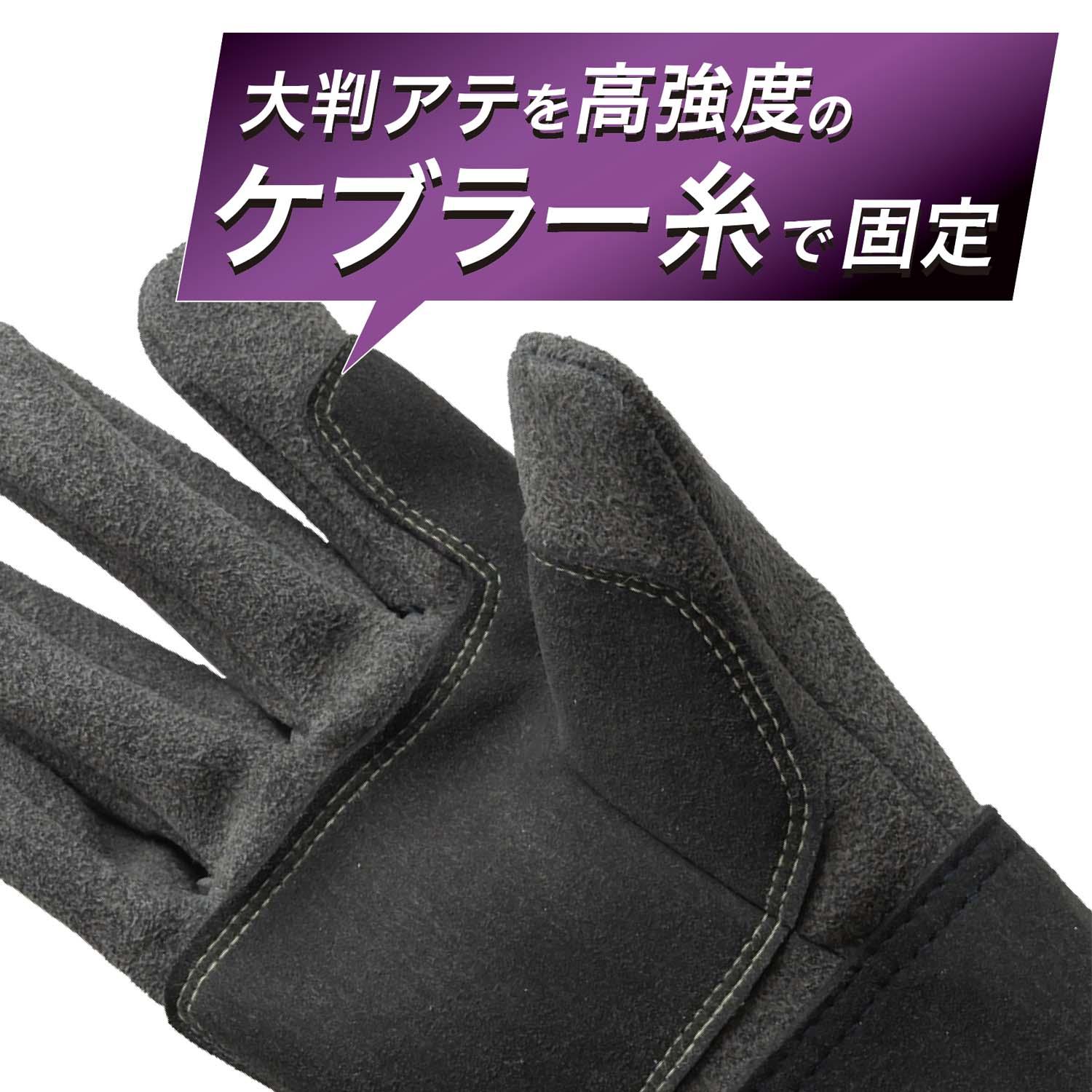 手のひらの大判牛床革当てを高強度のケブラー糸で固定